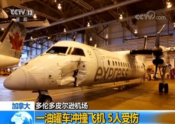 当地时间10日凌晨,加拿大多伦多皮尔逊国际机场发生油罐车冲撞飞机事件,包括飞行员在内的5人受伤,油罐车司机已被拘押并以危险方式驾驶车辆的罪名受到指控。