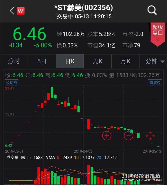 整个4月,*ST赫美股价多次闪崩跌停,累计跌去44.97%。