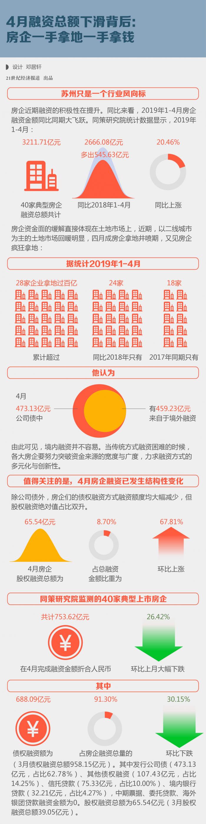 4月融资总额下滑背后:房企一手拿地一手拿钱