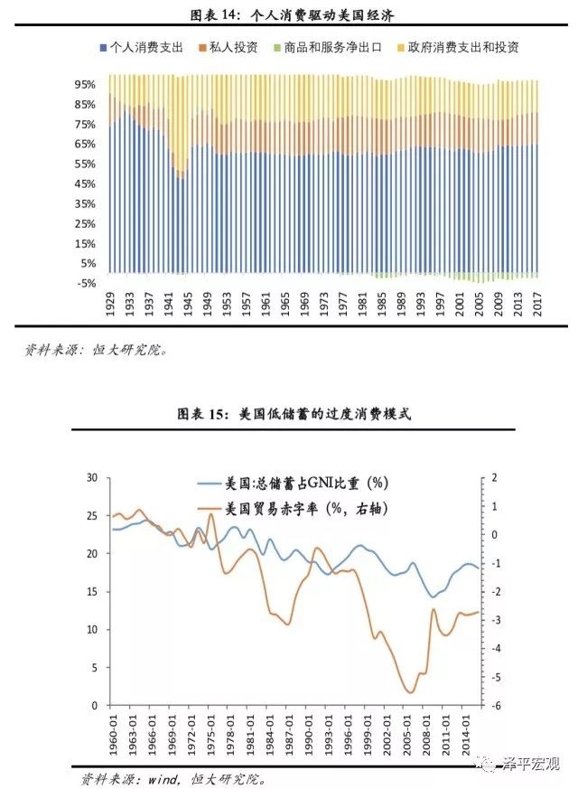 第二种观点认为,中国是内需为主的增长模式,每一阶段经济增长引擎的切换都是沿着居民消费结构升级路径展开的,80年代的轻纺,90年代的家电,2000年以来的汽车地产,每次主导产业升级与经济增长浪潮都是在居民从“衣食”到“耐用品”再到“住行”的消费结构升级带动下实现的。