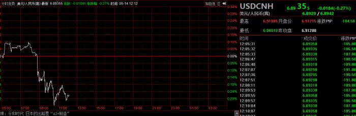 相较于前一日人民币兑美元急跌,今日人民币表现的较为稳定,离岸人民币对美元一度涨至6.8881。截至今天中午12点06分,美元兑人民币为6.8931,美元下跌0.27%。