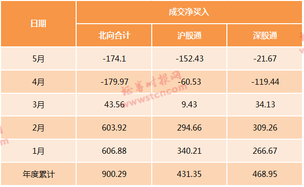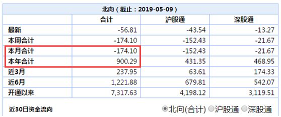 Wind统计数据显示,其中,5月以来(截至9日),本月4个交易日,北上资金均呈净流出,累计净流出174.1亿元。