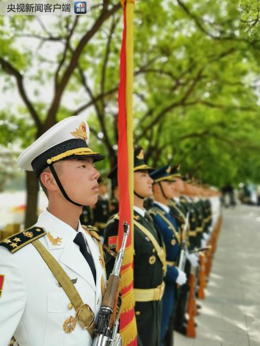 △三军仪仗队正在列队。(央视记者荆伟拍摄)