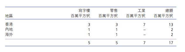 长实的财报显示,截至2018年底,公司在商业地产的布局主要以香港为主,拥有1300万平方呎的投资物业(包括写字楼、零售、工业地产),占整体投资物业的比重超过76%。而内地与海外的投资物业面积均为200万平方呎,占比约11%。