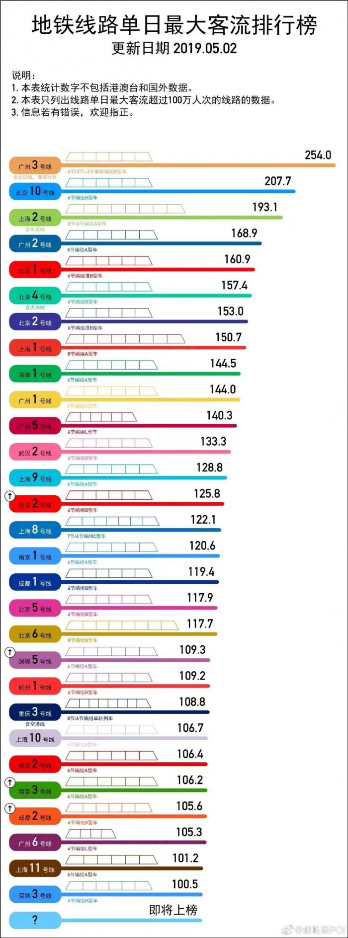 如你所料,广州地铁3号线喜提全国总冠军。