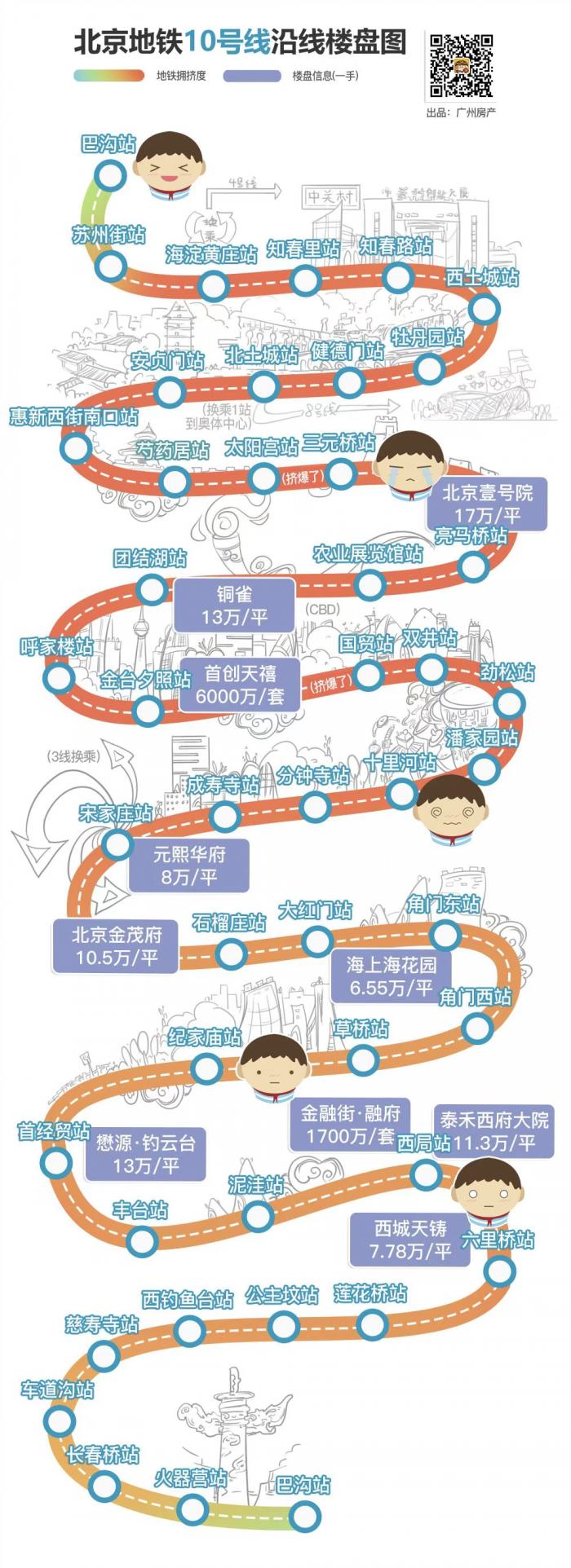 如图所示,10号线途径了北京一号院、铜雀等知名豪宅,房价表现自然少不了震撼。