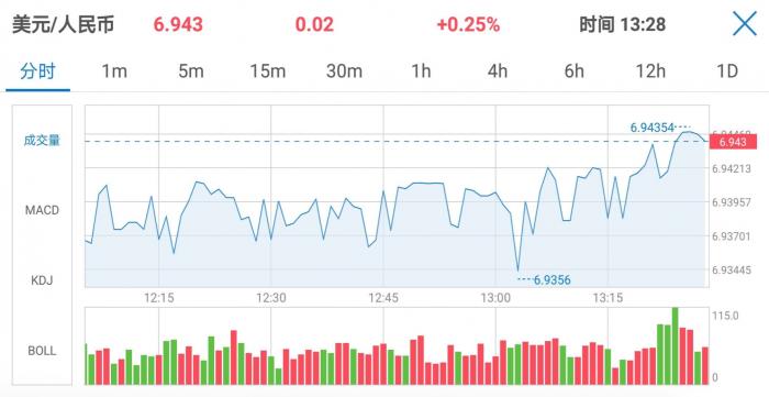 其中,离岸人民币兑美元接连跌破6.93、6.94两大关口,最低报6.9435,当日下跌幅度超过300点,在岸人民币兑美元突破6.91关口,最低报6.9121,创下2018年12月24日以来新低。同日,人民币对美元中间价下调171个基点,报6.8859,为连续第7日调降。