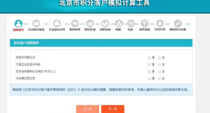 模拟打分网址(http://www.bjrbj.gov.cn/integraltool/tool/simulation)