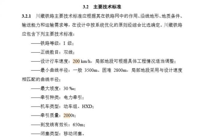 文件首次明确披露,川藏铁路的设计标准将达到时速200公里。