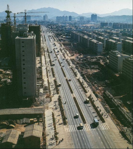 1986年,深南大道从罗湖旧城区开始,一直只延伸至上海宾馆,再往西就是双车道的黄土路;如今的深南大道已经是又直又宽的现代化大马路,极富岭南特色的树木立于大道两旁,花草园林装点于其间。