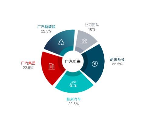 2018年4月,广汽蔚来成立,注册资金5亿元人民币,除了广汽集团和蔚来汽车两大股东及相关的广汽新能源、蔚来基金之外,广汽蔚来还有10%的员工持股。