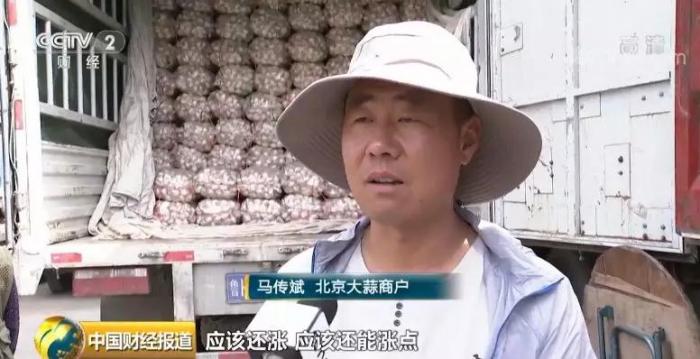 北京大蒜商户 马传斌:应该还能涨点,因为人气高。现在都存蒜,老百姓也存,小商贩也存,发货的也存。