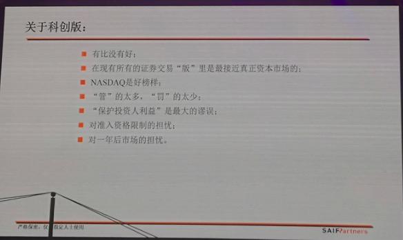 至于当下热门的科创板,阎焱给予了高度评价,认为“有比没有好”,而且在现有所有的证券交易“板”里,其最接近真正的资本市场。