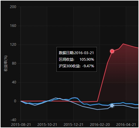 随后2016年,黄平旗下的一只产品再次在短短35天的时间内,净值出现翻倍的走势:该基金在2016年2月15日的净值还是0.9930元,不过至2016年3月21日该产品净值为2.059元,净值出现翻倍走势,引起市场的广泛关注。