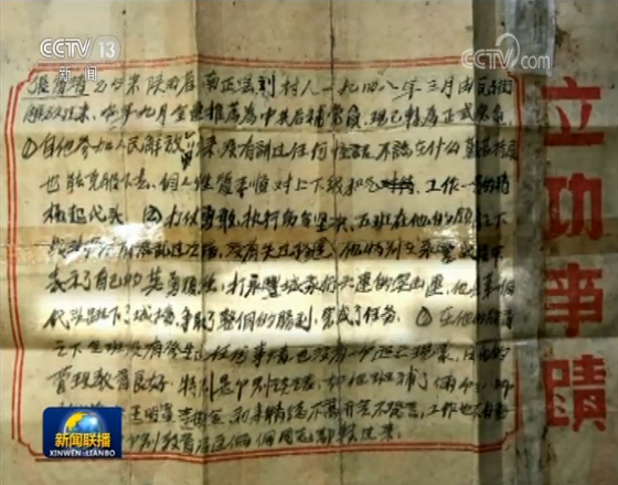 这一张“特等功”报功书,是1948年发出的,也是在这一年,张富清加入解放军西北野战军,报功书中特别提到,在永丰战役中,张富清所在的六连是突击连,“他第一个带头跳下了4米高的城墙”。