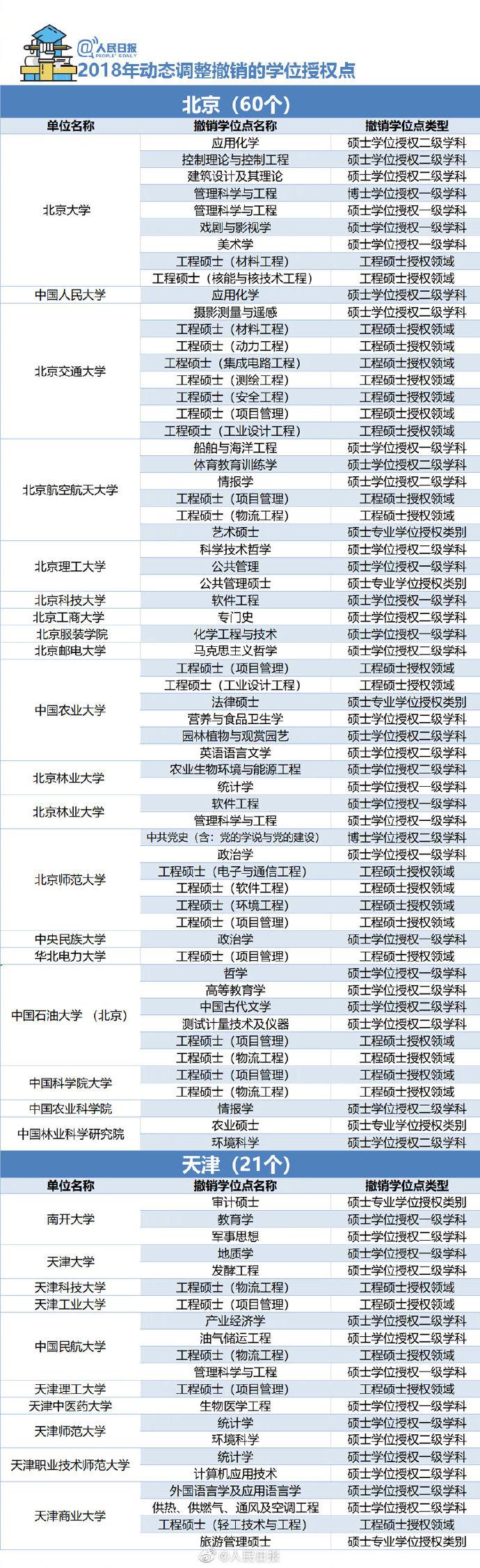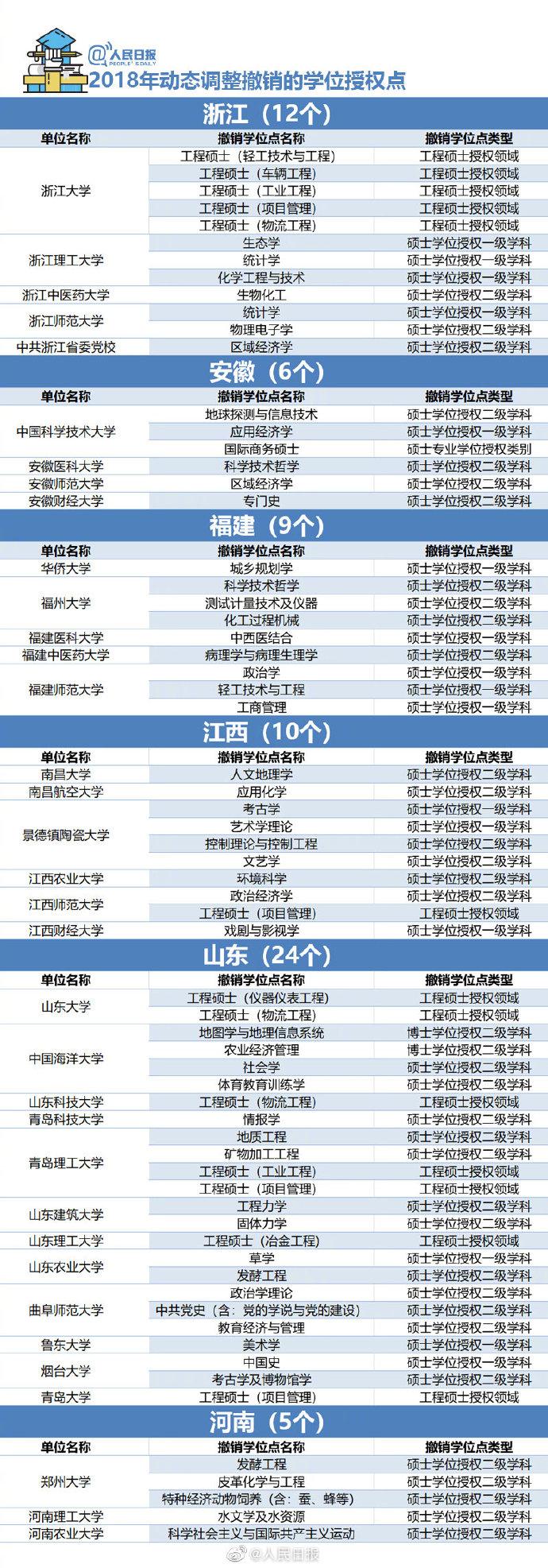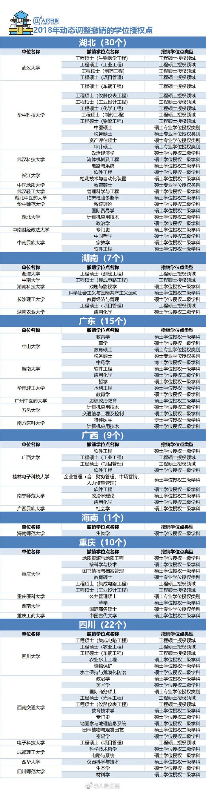 近日,国务院学位委员会公布了2018年动态调整撤销和增列的学位授权点名单。182所高校或单位撤销了489个学位点,与此同时,147所高校或单位增列了218学位点。具体增撤了哪些学位点?涉及哪些高校?戳图了解↓↓
