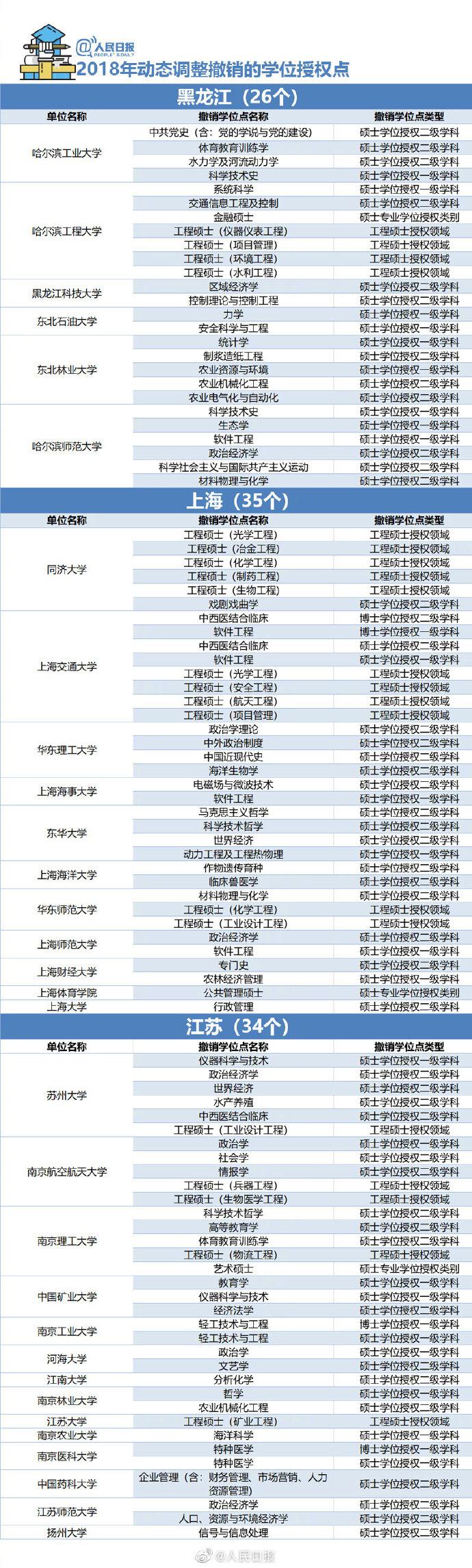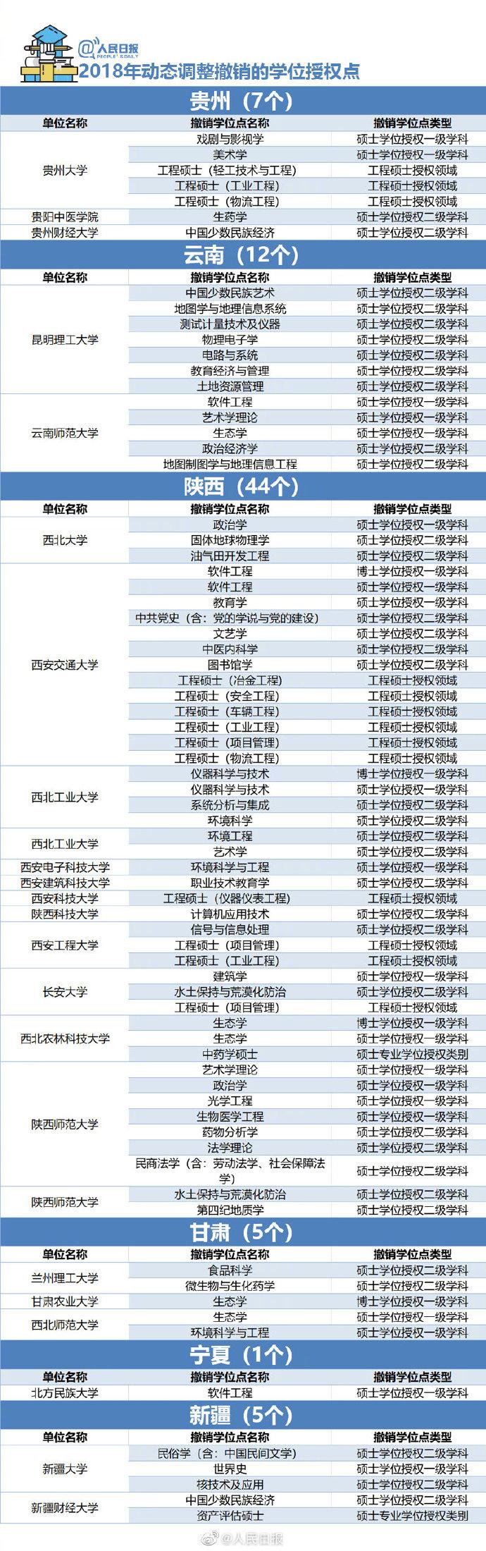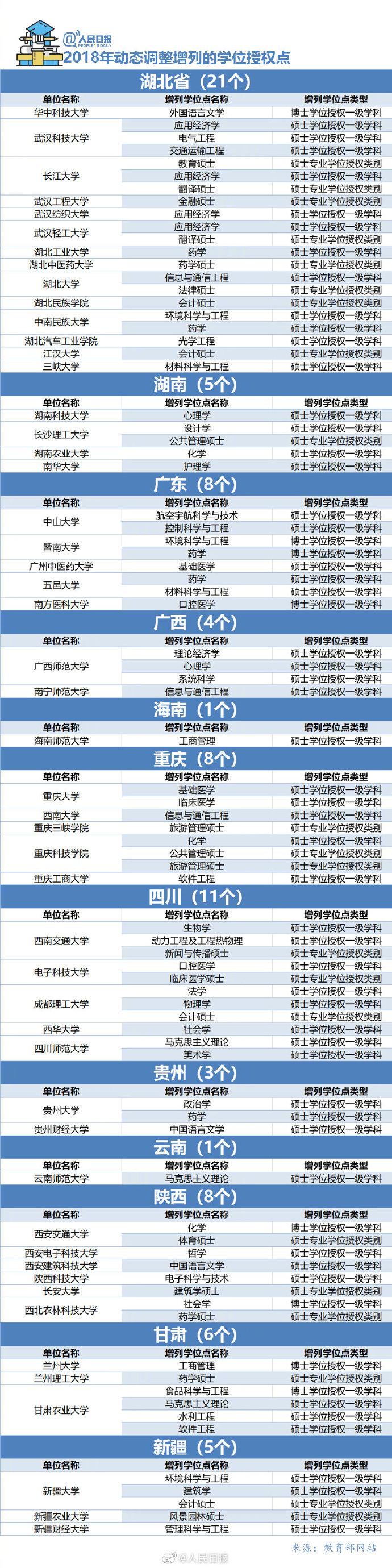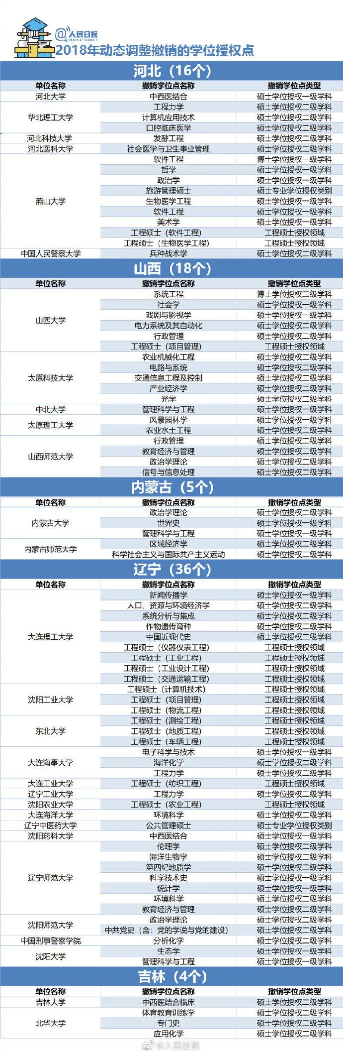 近日,国务院学位委员会公布了2018年动态调整撤销和增列的学位授权点名单。182所高校或单位撤销了489个学位点,与此同时,147所高校或单位增列了218学位点。具体增撤了哪些学位点?涉及哪些高校?戳图了解↓↓