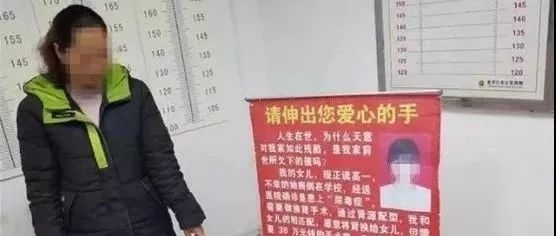 红底白字写的“请伸出您爱心的手”求助书广告牌上,配着一张“女儿”红底登记照以及学校、医院手术室等照片。