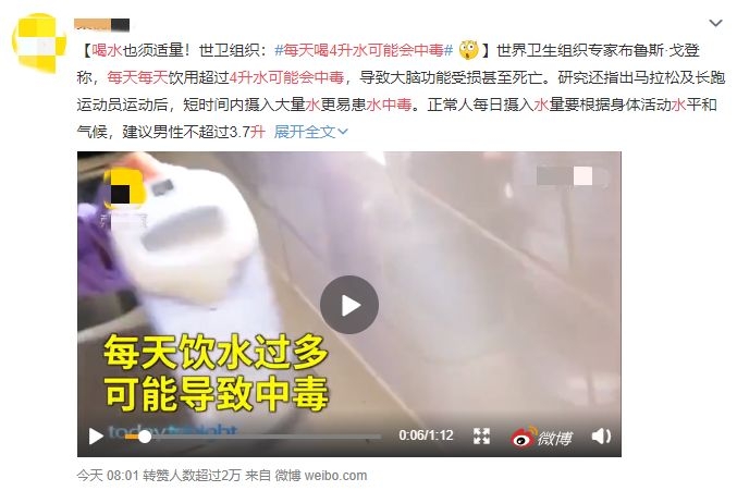听到这个消息,广大网友一时间炸了锅。其实,关于“水中毒”的新闻也曾有报道: