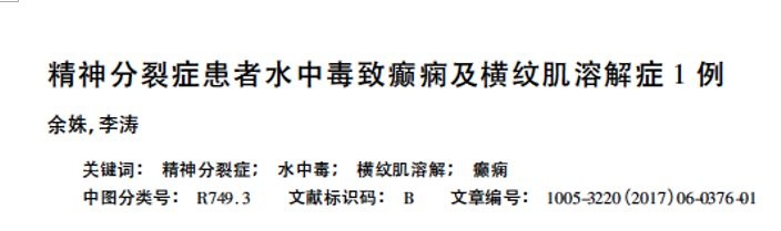 图片来源:《精神分裂症患者水中毒致癫痫及横纹肌溶解症1例》