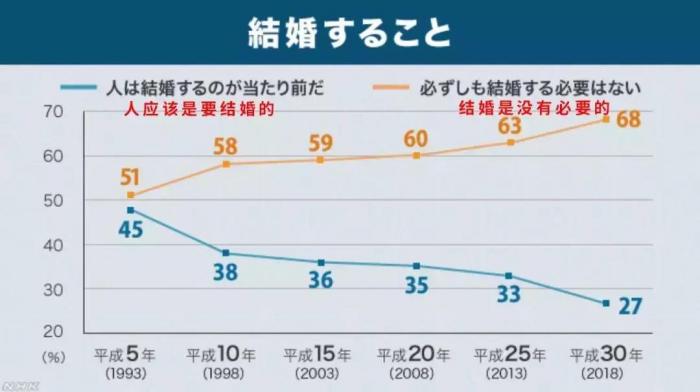 随着不婚率的提高,单身在日本已成为主流趋势,舆论环境对于单身变得宽容。你要是选择不结婚,不仅不会有七大姑八大姨催你结婚,反而能找到很多同路人。