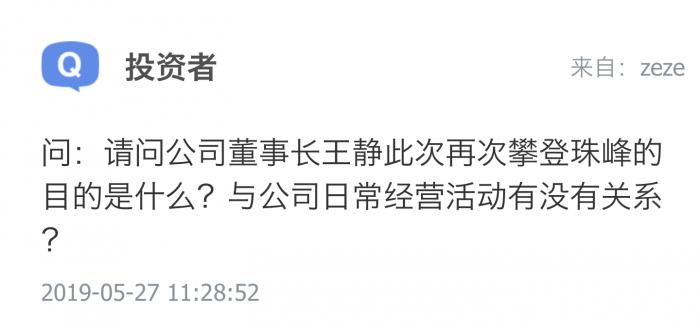 近些年来,越来越多人热衷于征服世界第一高峰,在秋季登山季之后,2019年攀登珠峰的人数可能会达到历史新高,超越去年807人的纪录。在这些攀登者当中,有一位知名企业家,她就是A股上市公司探路者的董事长兼总裁王静。这已经是她第四次攀登珠峰,比王石多两次。