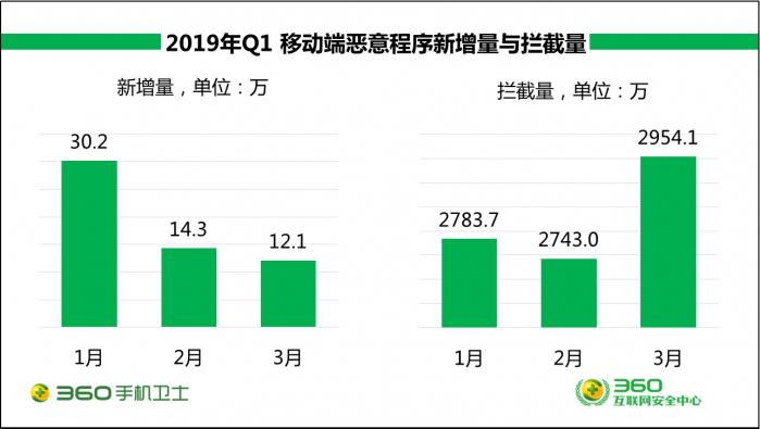 2019年第一季度,360互联网安全中心共截获安卓平台新增恶意程序样本约56.6万个,截获各类新增钓鱼网站502.1万个。