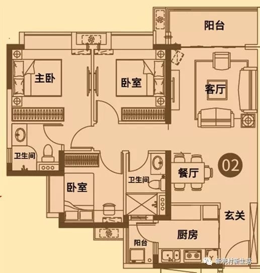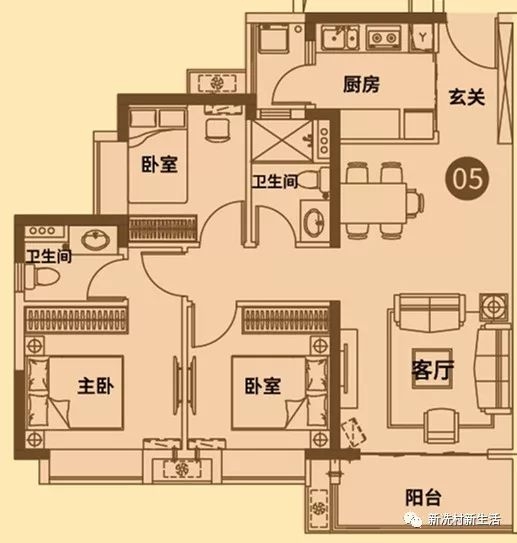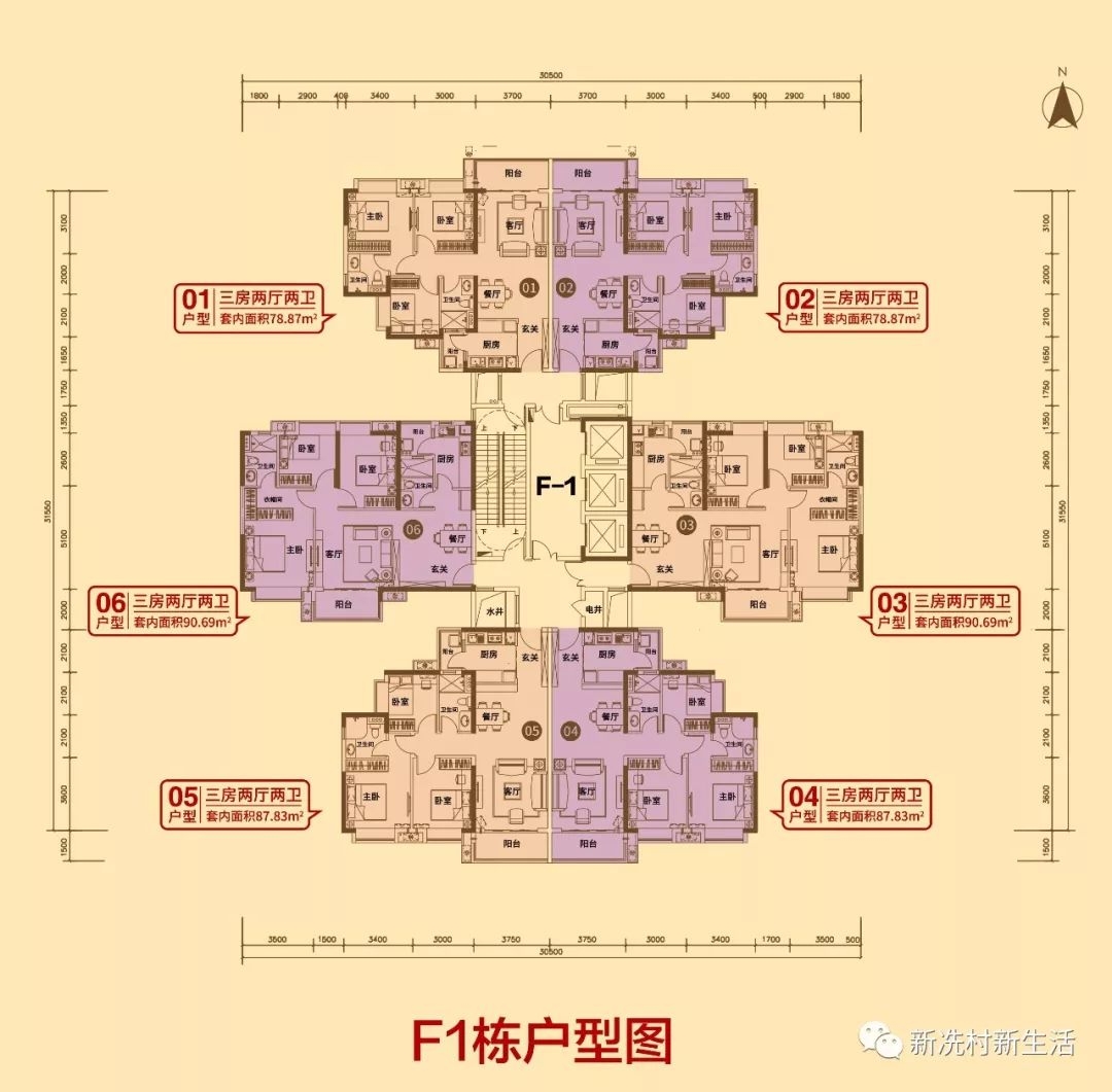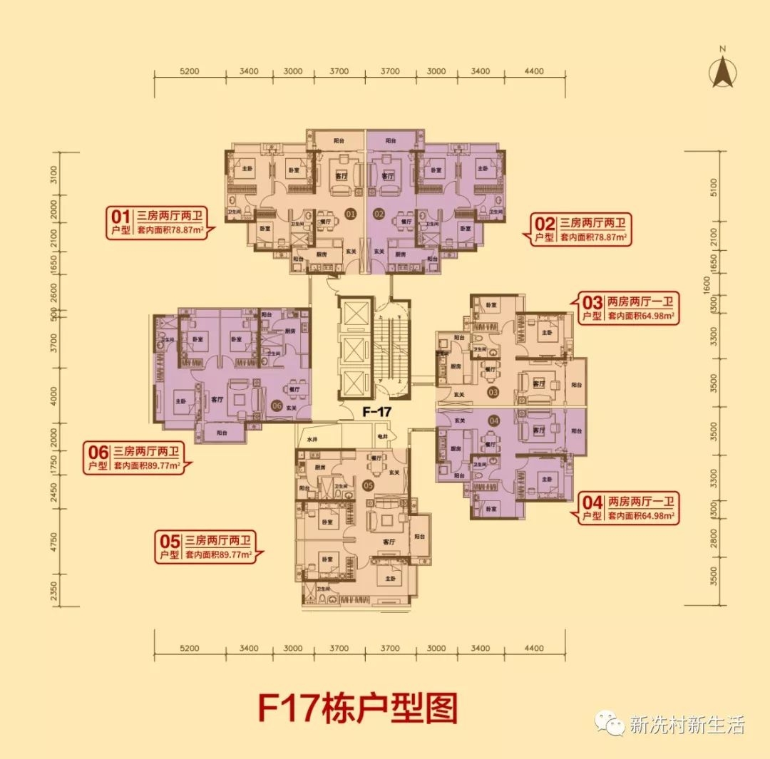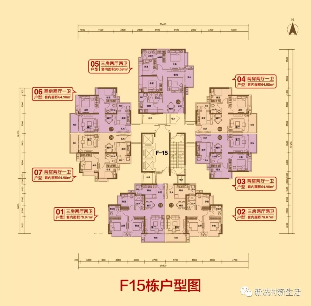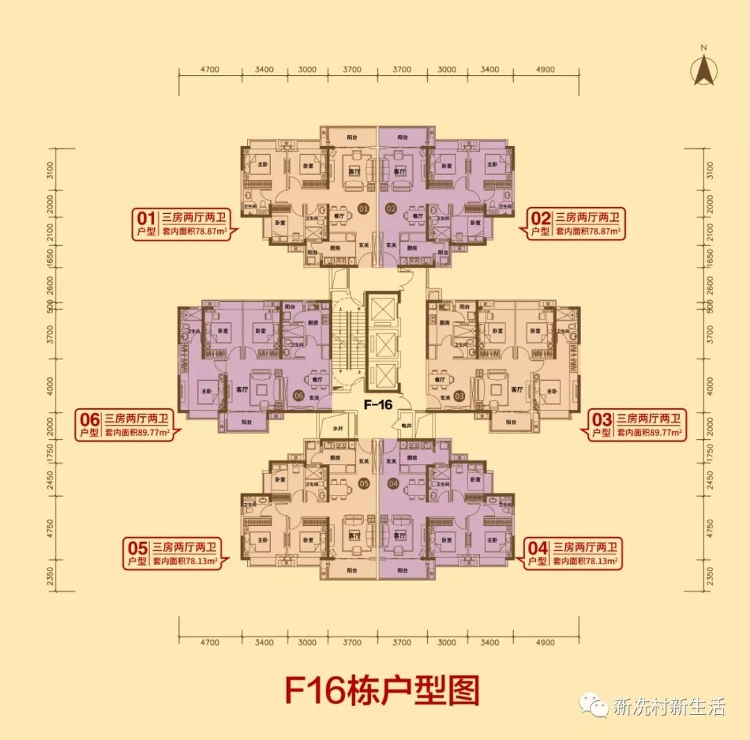 78.13㎡ 三房两厅两卫。据公众号:新冼村新生活(下同)