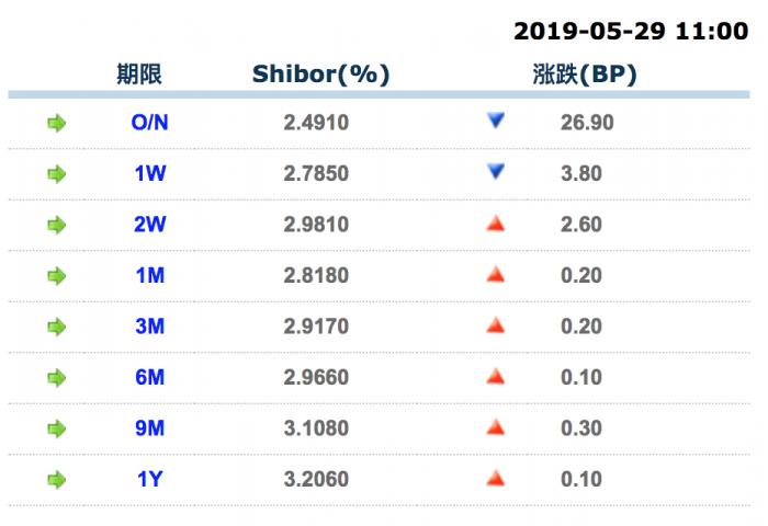 不过在4000亿资金入市后,今日资金面价格出现不同程度回落。5月29日午盘DR007加权利率报2.8002%,保持稳定;短期Shibor则出现回落,29日隔夜shibor报2.4910%,下行26.90BP;7天shibor报2.7850%,下行3.80BP,其余中长期shibor则有微幅上涨。