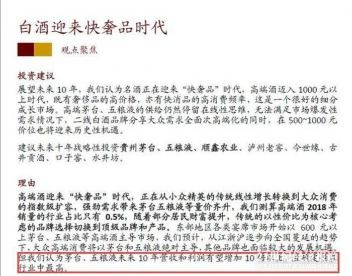 其三,中金力挺:十年后茅台酒出厂价四千。