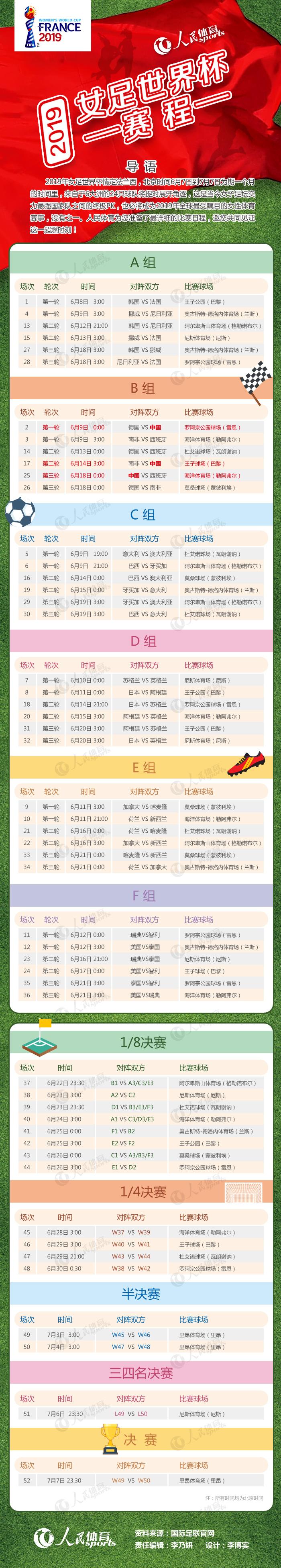 收藏这份2019法国女足世界杯赛程!为“铿锵玫瑰”加油
