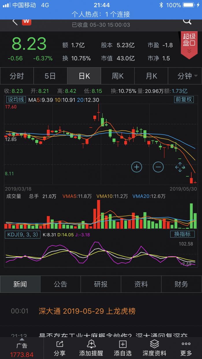 自5月23日被爆“暴力抗法”后,深大通股价经历6天三个跌停板,截至目前市值蒸发1/3(22.02亿元),剩下43亿元。