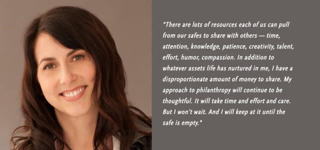 “除了生活给予我的财富外,我还有不成比例的资金可供分享。我将继续保持对慈善事业的关注,这需要时间、精力和关心。我会一直坚持下去,直到保险箱空了。”麦肯齐在声明中宣布,她已签署“捐赠承诺”,承诺在有生之年或去世之后,将资产中的一半,捐赠给慈善机构。