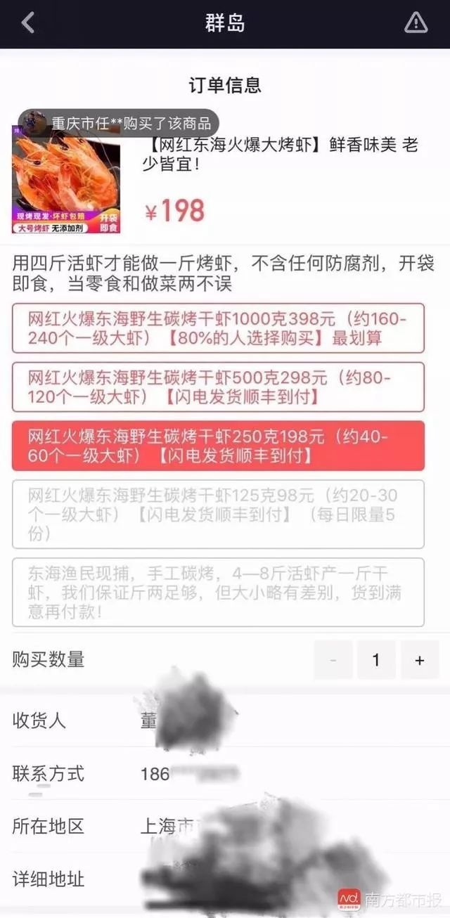 “之前没在抖音买过东西,其实本来就带着可能会上当的预期,但没想到是直接下单不付款货到付款这种霸道方式。”她对南都记者说,自己在一家世界五百强的食品公司就职,作为品牌方也在一些平台投放过广告,当时选择下单,除了被视频打动很想吃烤虾外,也有想尝试一下,“看看抖音的电商怎么样”的念头。