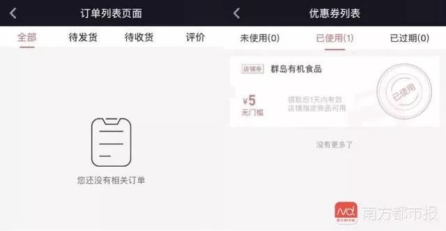 董小姐在抖音查无订单,仅显示她曾使用优惠券。