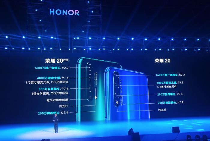 价格方面,荣耀20售价2699元起,荣耀20 Pro则3199元起。