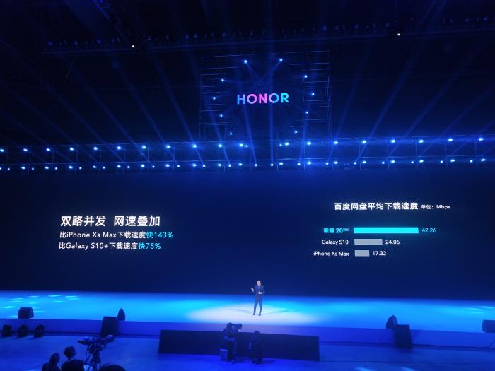 在介绍的过程中,荣耀一直对比苹果和三星,来突出数据优势。