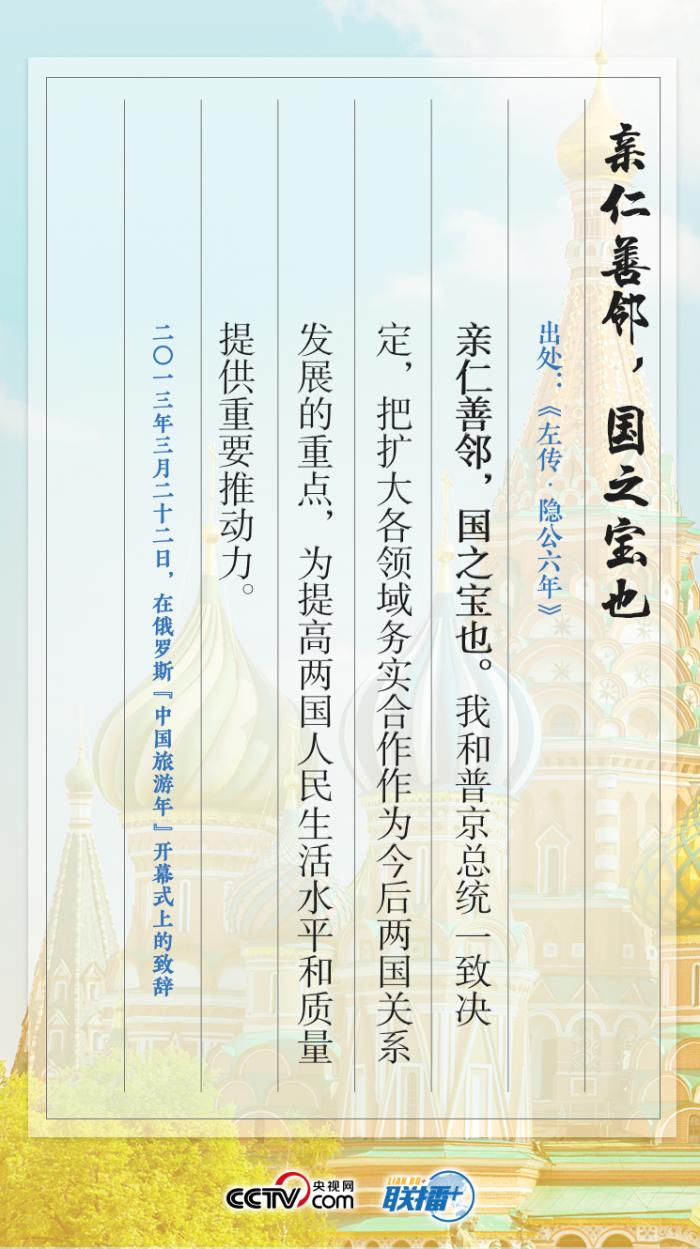 “亲仁善邻,国之宝也。”广泛采撷古人的经典名句,巧加点化,赋予其鲜活的时代价值是习近平讲话的一大特色。近年来,习近平曾多次引用古文典籍中的佳句,情真意切地表达了对中俄关系的高度重视,寓意深邃,生动传神。央视网特整理,带您一起学习经典,品味其中的独特韵味。