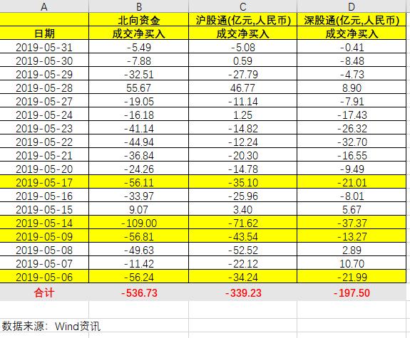 以下是5月北上资金净卖出的具体情况: