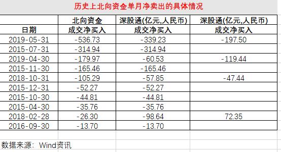 以下是历史上北上资金单月净卖出的情况: