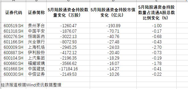 具体到个股来看,此前备受外资青睐的众多白马股在5月遭到了北上资金的抛售。