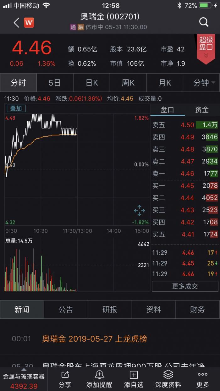 5月31日早盘,红牛的主要供应商之一奥瑞金(002701.SZ)一改连月来的下跌趋势,上涨1.36%。