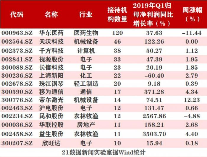 接待机构数量方面,华东医药(000963.SZ)成为最受机构青睐的公司,共计接待了120家机构。