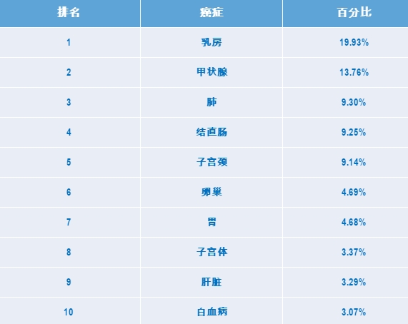 女性发病率最高的十大癌症