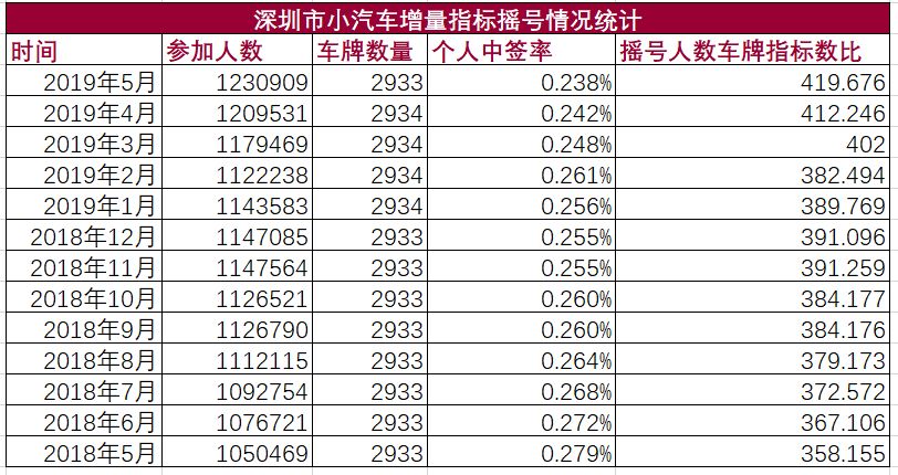 ● 2019年6至12月,深圳个人车牌摇号指标增长率达到42.85%;