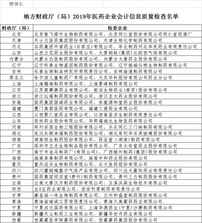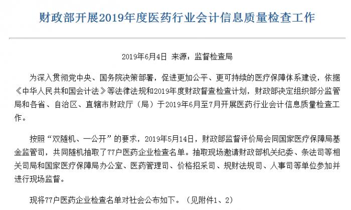 财政部:开展2019年度医药行业会计信息质量检查工作