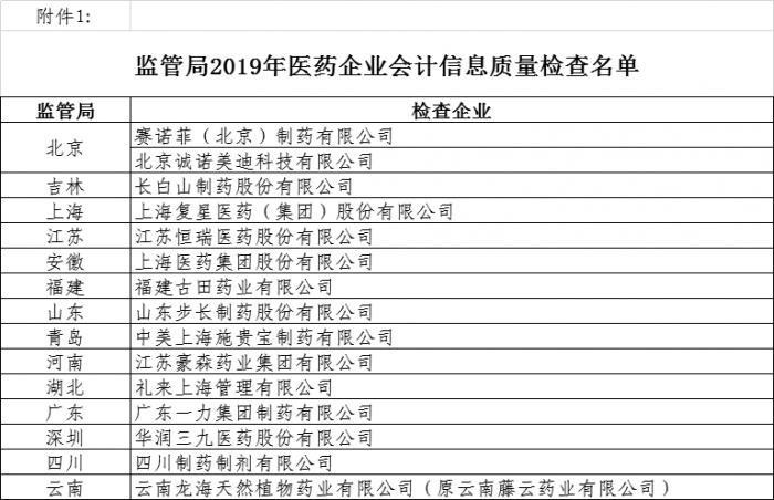 77家企业被列入检查名单。文件显示,包括赛诺菲、施贵宝等国际知名药企和复星医药、恒瑞医药、步长制药、上海医药等A股多家上市药企都在该份检查名单中。