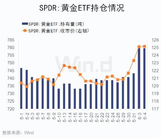Wind数据显示,衡量投资者情绪的全球最大黄金ETF——SPDR Gold Trust持仓周一增加16.44吨,增加数量为2016年7月6日以来最多,这也使得当前持仓量升至759.65吨,创近两个月新高。