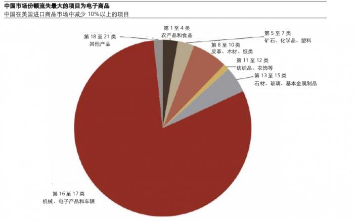 部分从中国流失的市场份额到了哪里?报告指出,在电子市场上,美国进口商在去年9月关税生效前囤积了大量中国进口商品。在9月后这些市场流向了韩国和中国台湾的供应商。