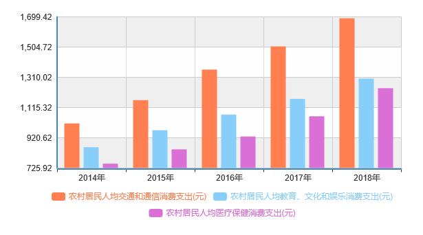 从具体数据上看,农村居民在教育、医疗、通讯等支出上,也在持续提升。
